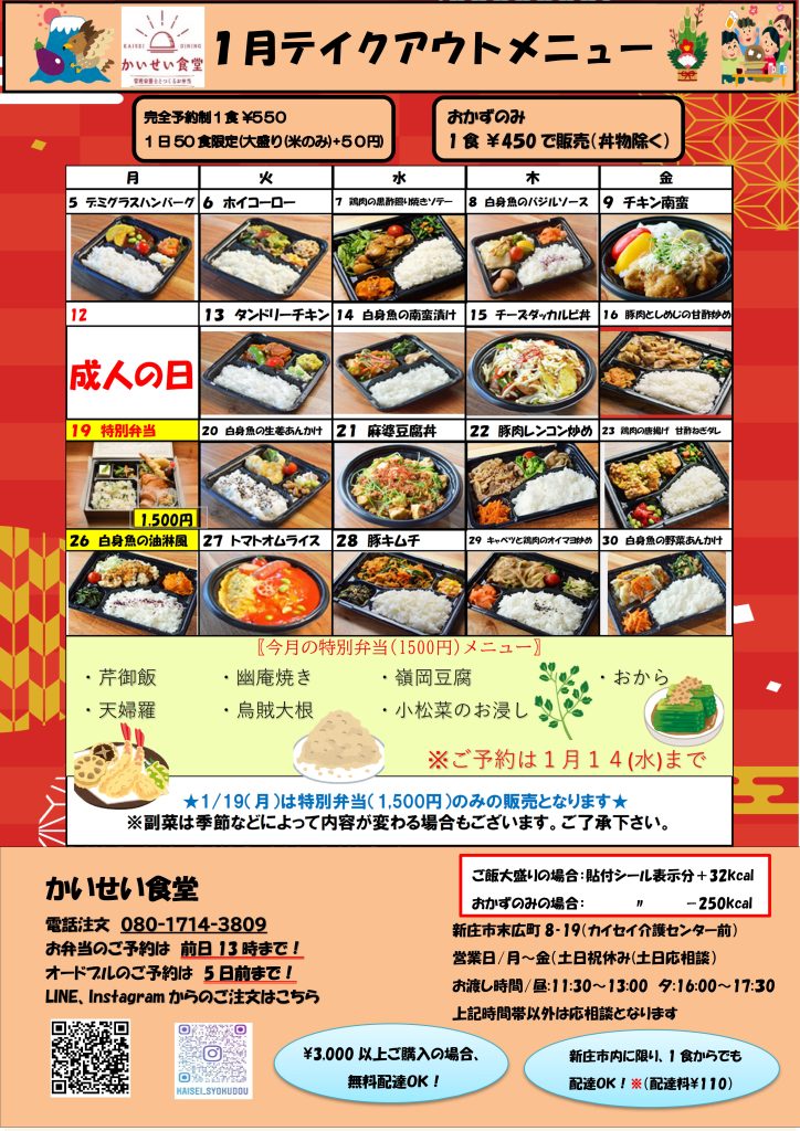 令和8年1月テイクアウトメニュー 2025 12/22 その他 2025年12月22日旧年中は誠に有難うございました。令和8年度も宜しくお願い致します。 その他 この記事が気に入ったら いいねしてね! シェアお願いいたします URLをコピーしました! カイセイデイ通信12月号