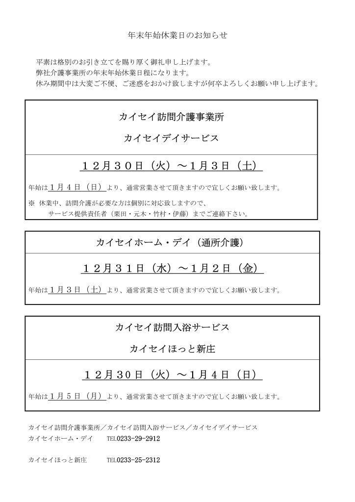 年末年始休業日のお知らせ 12月30日(火)~1月4日(日)までお休みを頂いております。 ご不便をおかけ致しますが、宜しくお願い申し上げます。